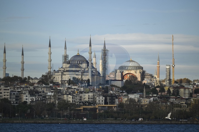 Skyline of the coast, with views of the Asian and European sides, including the Blue Mosque, which will be visited by Pope Leo, and the Hagia Sophia (Aya Sofya), currently under restoration. Istanbul, November 26, 2025, Credit:Valeria Ferraro/AGF / Avalon