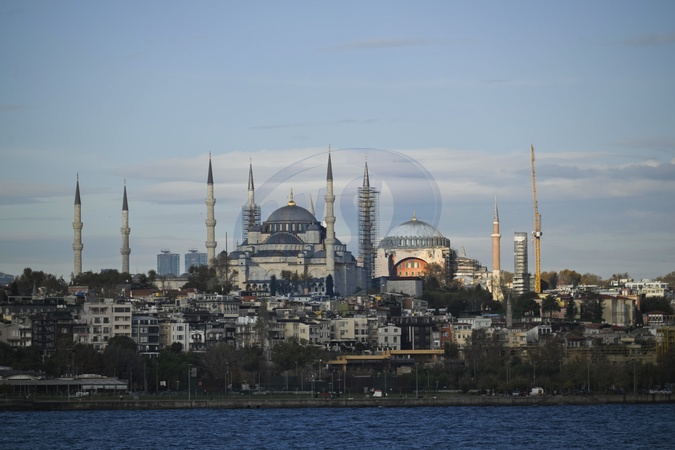 Skyline of the coast, with views of the Asian and European sides, including the Blue Mosque, which will be visited by Pope Leo, and the Hagia Sophia (Aya Sofya), currently under restoration. Istanbul, November 26, 2025, Credit:Valeria Ferraro/AGF / Avalon