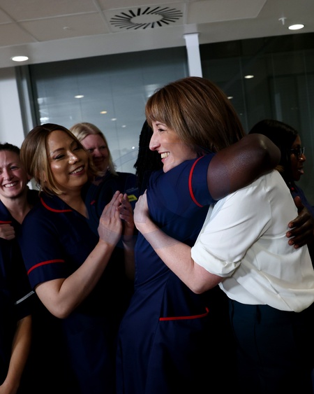 26/11/2025. London, United Kingdom. Prime Minister Keir Starmer, Chancellor Rachel Reeves and Health Secretary Wes Streeting meet staff while visiting University College Hospital after presenting the Budget 2025 to Parliament., Credit:Lauren Hurley / Avalon