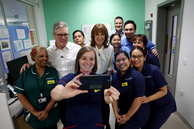 26/11/2025. London, United Kingdom. Prime Minister Keir Starmer, Chancellor Rachel Reeves and Health Secretary Wes Streeting meet staff while visiting University College Hospital after presenting the Budget 2025 to Parliament., Credit:Lauren Hurley / Avalon