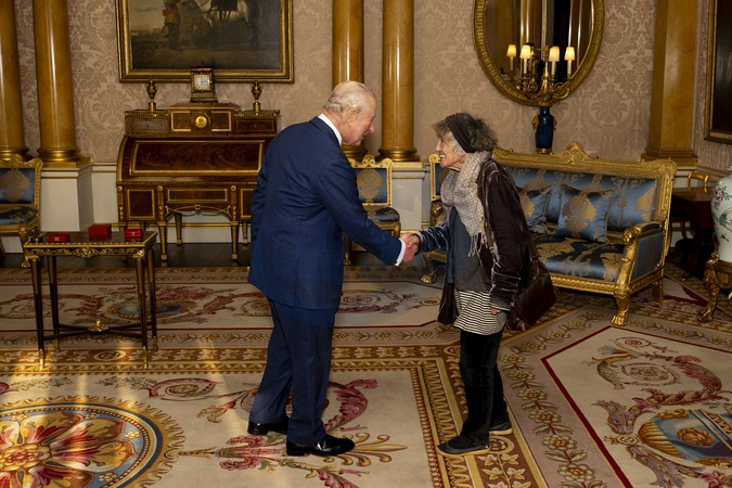 King Charles III during an audience with Ms Selima Hill, who was presented with The King's Gold Medal for Poetry for 2022, at Buckingham Palace, London. Picture date: Wednesday November 26, 2025., Credit:Jordan Pettitt / Avalon