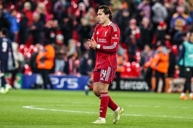 Federico Chiesa of Liverpool applauds the fans after the game during the UEFA Champions League Matchday 5 of 8 Liverpool vs PSV Eindhoven at Anfield, Liverpool, United Kingdom, 26th November 2025, Credit:Ae Cosgrove/News Images / Avalon