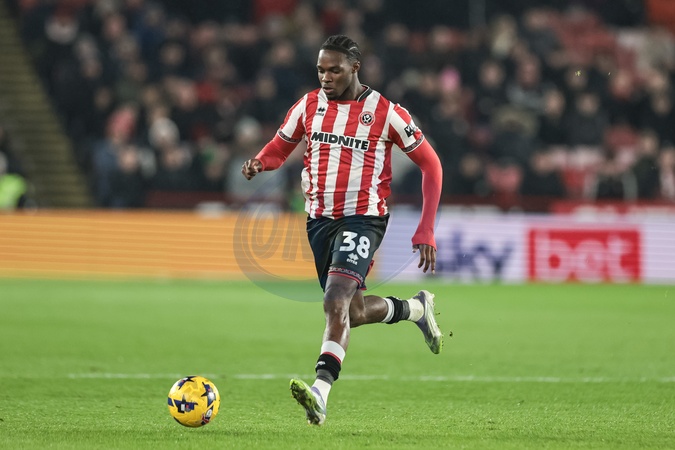 Femi Seriki of Sheffield United breaks with the ball during the Sky Bet Championship match Sheffield United vs Portsmouth at Bramall Lane, Sheffield, United Kingdom, 26th November 2025, Credit:Mark Cosgrove/News Images / Avalon