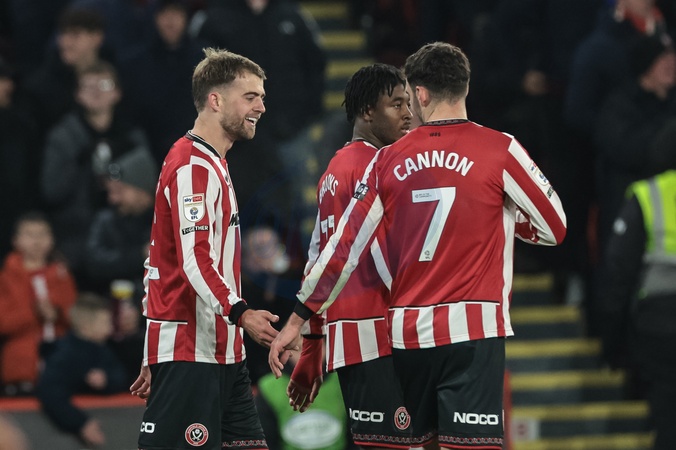 Patrick Bamford of Sheffield United celebrates his goal to make it 2-0 during the Sky Bet Championship match Sheffield United vs Portsmouth at Bramall Lane, Sheffield, United Kingdom, 26th November 2025, Credit:Mark Cosgrove/News Images / Avalon