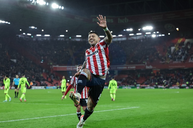 Gustavo Hamer of Sheffield United celebrates his goal to make it 3-0 during the Sky Bet Championship match Sheffield United vs Portsmouth at Bramall Lane, Sheffield, United Kingdom, 26th November 2025, Credit:Mark Cosgrove/News Images / Avalon