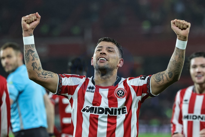 Gustavo Hamer of Sheffield United celebrates his goal to make it 3-0 during the Sky Bet Championship match Sheffield United vs Portsmouth at Bramall Lane, Sheffield, United Kingdom, 26th November 2025, Credit:Mark Cosgrove/News Images / Avalon