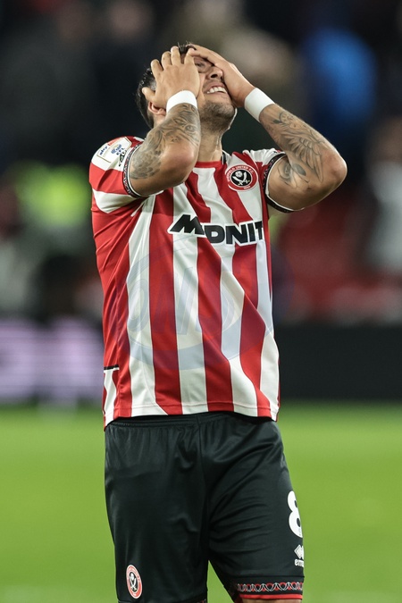 Gustavo Hamer of Sheffield United reacts with the fans after winning 3-0 during the Sky Bet Championship match Sheffield United vs Portsmouth at Bramall Lane, Sheffield, United Kingdom, 26th November 2025, Credit:Mark Cosgrove/News Images / Avalon