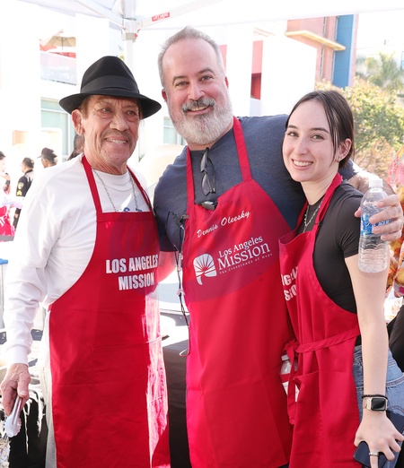 26 November 2025 . Los Angeles, California - Danny Trejo, Dennis Oleesky, Samantha Oleesky, At 2025 Thanks & Giving On Skid Row held at Los Angeles Mission in Los Angeles., Credit:Sadou Faye / Avalon