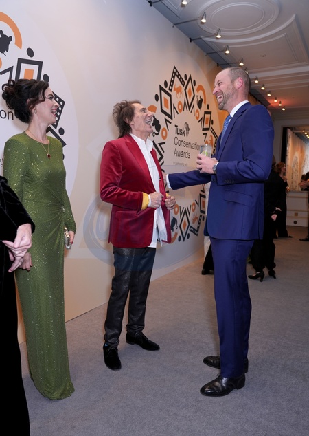 The Prince of Wales speaks to Ronnie Wood as he arrives for the Tusk Conservation Awards at The Savoy Hotel in central London. Picture date: Wednesday November 26, 2025., Credit:Avalon.red / Avalon