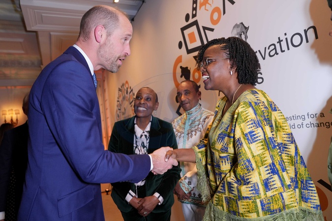 The Prince of Wales greets Rahima Njaidi as he arrives for the Tusk Conservation Awards at The Savoy Hotel in central London. Picture date: Wednesday November 26, 2025., Credit:Avalon.red / Avalon