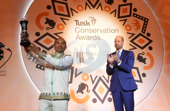 Kumara Wakjira poses with his award during the Tusk Conservation Awards at The Savoy Hotel in central London. Picture date: Wednesday November 26, 2025., Credit:Avalon.red / Avalon