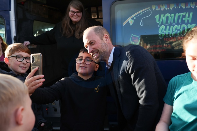 25/11/2025. Mochdre, UK. The Prince of Wales visits Youth Shedz at their headquarters in Mochdre, an organisation that creates safe spaces for young people facing challenges such as school exclusion, bullying and homelessness. His Royal Highness met young service users, heard how the charity supports those with adverse childhood experiences, and viewed activities including 3D printing and gaming before seeing the outreach bus Betsi, used to reach young people in the wider community., Credit:Ryan Jenkinson / Kensington Palace / Avalon