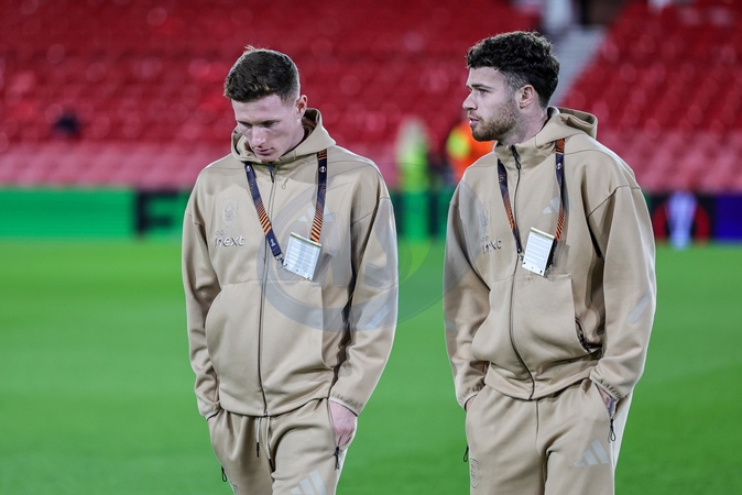 Elliot Anderson of Nottingham Forest and Neco Williams of Nottingham Forest arrive during the UEFA Europa League Matchday 5 of 8 Nottingham Forest vs Malmo FF at City Ground, Nottingham, United Kingdom, 27th November 2025, Credit:Mark Cosgrove/News Images / Avalon