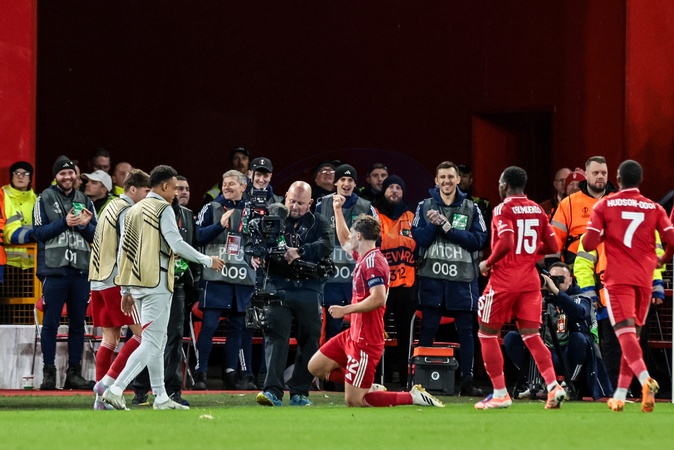 Ryan Yates of Nottingham Forest celebrates his goal to make it 1-0 during the UEFA Europa League Matchday 5 of 8 Nottingham Forest vs Malmo FF at City Ground, Nottingham, United Kingdom, 27th November 2025, Credit:Mark Cosgrove/News Images / Avalon