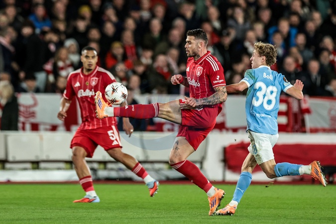 Morato of Nottingham Forest controls the ball during the UEFA Europa League Matchday 5 of 8 Nottingham Forest vs Malmo FF at City Ground, Nottingham, United Kingdom, 27th November 2025, Credit:Mark Cosgrove/News Images / Avalon