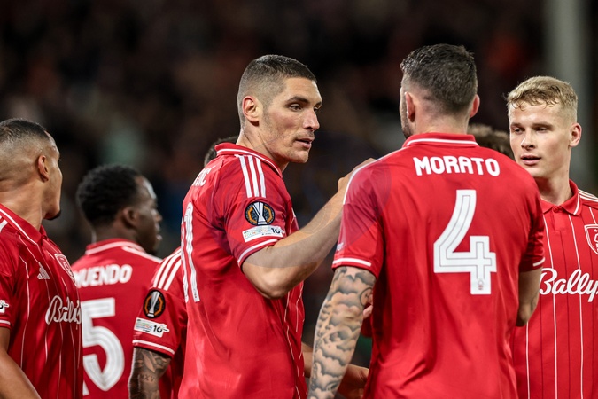 Nikola Milenkovic of Nottingham Forest celebrates his goal to make it 3-0 during the UEFA Europa League Matchday 5 of 8 Nottingham Forest vs Malmo FF at City Ground, Nottingham, United Kingdom, 27th November 2025, Credit:Mark Cosgrove/News Images / Avalon