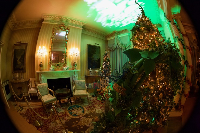The Jack & The Beanstalk themed room. The beautifully decorated rooms with the themes of pantomimes at Hinton Ampner House in Hampshire. Visitors are invited to join them this Christmas and discover scenes from the most loved pantomimes. Twinkling fairylights shimmer their magic across the beautiful house. Every room of the ground floor features a different, pantomime. Come and bask in the glow of Aladdin's lamp, see Jack's magic beans and a glittering Cinderella slipper, discover Snow White's sumptuous forest feast and marvel at a quilted mountain of mattresses made ready for a sleepy princess. Fe, fi, fo, fum, is that a giant I hear at Hinton Ampner?, Credit:Geoffrey Swaine / Avalon