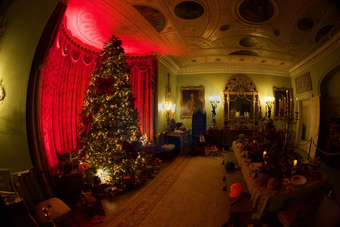 The Snow White's Feast room. The beautifully decorated rooms with the themes of pantomimes at Hinton Ampner House in Hampshire. Visitors are invited to join them this Christmas and discover scenes from the most loved pantomimes. Twinkling fairylights shimmer their magic across the beautiful house. Every room of the ground floor features a different, pantomime. Come and bask in the glow of Aladdin's lamp, see Jack's magic beans and a glittering Cinderella slipper, discover Snow White's sumptuous forest feast and marvel at a quilted mountain of mattresses made ready for a sleepy princess. Fe, fi, fo, fum, is that a giant I hear at Hinton Ampner?, Credit:Geoffrey Swaine / Avalon