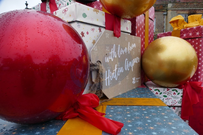 The gardens. The beautifully decorated rooms with the themes of pantomimes at Hinton Ampner House in Hampshire. Visitors are invited to join them this Christmas and discover scenes from the most loved pantomimes. Twinkling fairylights shimmer their magic across the beautiful house. Every room of the ground floor features a different, pantomime. Come and bask in the glow of Aladdin's lamp, see Jack's magic beans and a glittering Cinderella slipper, discover Snow White's sumptuous forest feast and marvel at a quilted mountain of mattresses made ready for a sleepy princess. Fe, fi, fo, fum, is that a giant I hear at Hinton Ampner?, Credit:Geoffrey Swaine / Avalon
