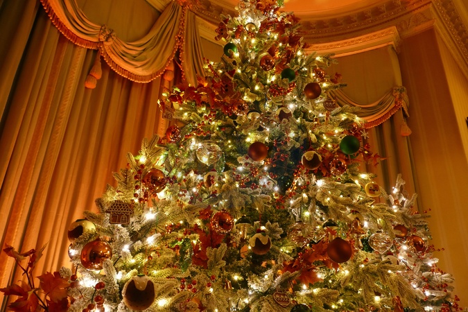 The beautifully decorated rooms with the themes of pantomimes at Hinton Ampner House in Hampshire. Visitors are invited to join them this Christmas and discover scenes from the most loved pantomimes. Twinkling fairylights shimmer their magic across the beautiful house. Every room of the ground floor features a different, pantomime. Come and bask in the glow of Aladdin's lamp, see Jack's magic beans and a glittering Cinderella slipper, discover Snow White's sumptuous forest feast and marvel at a quilted mountain of mattresses made ready for a sleepy princess. Fe, fi, fo, fum, is that a giant I hear at Hinton Ampner?, Credit:Geoffrey Swaine / Avalon