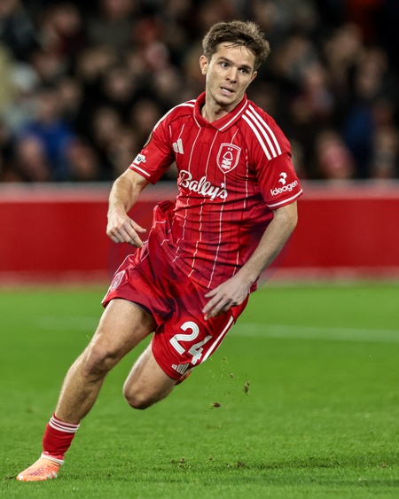 James McAtee of Nottingham Forest in action during the UEFA Europa League Matchday 5 of 8 Nottingham Forest vs Malmo FF at City Ground, Nottingham, United Kingdom, 27th November 2025, Credit:Mark Cosgrove/News Images / Avalon