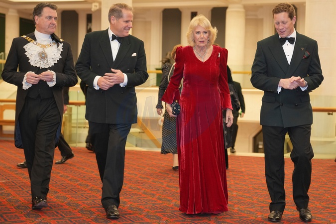 Britain's Queen Camilla, Colonel-in-Chief The Rifles and Royal Colonel 4th Battalion The Ranger Regiment, is escorted in as she attends the Biennial RIFLES Awards Dinner, in London, Thursday, Nov. 27, 2025., Credit:Kin Cheung / Avalon