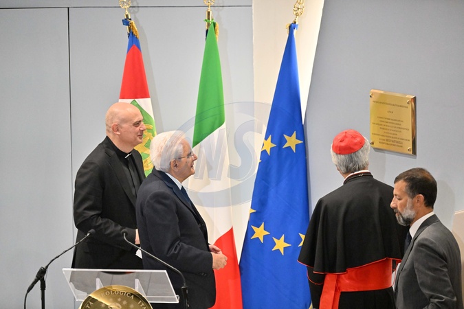27/11/2025 Napoli, cerimonia di inaugurazione dell'Anno accademico 2025/2026 della Pontificia Universita' Teologica dell'Italia Meridionale. Nella foto: Don Mimmo Battaglia e Sergio Mattarella, Credit:Felice De Martino / Avalon