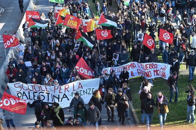 Unicobas union strikes against the budget and for Palestine . Florence, Italy 28 November 2025, Credit:Aleandro Biagianti / Avalon