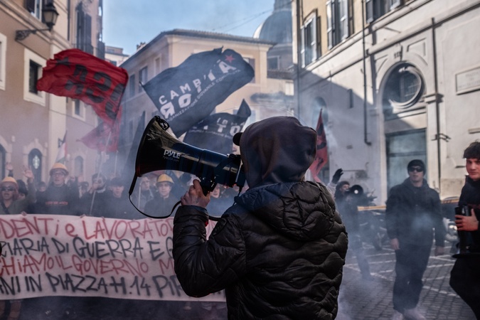 Presidium at Montecitorio following the general strike against the war budget .Rome, Italy 28 November 2025, Credit:Francesca Bolla / Avalon