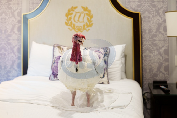 The 2025 Presidential Turkeys, named Gobble and Waddle, arrive at the Willard InterContinental Hotel in Washington, D.C., on Sunday, November 24, 2025., Credit:Andrea Hanks / Avalon
