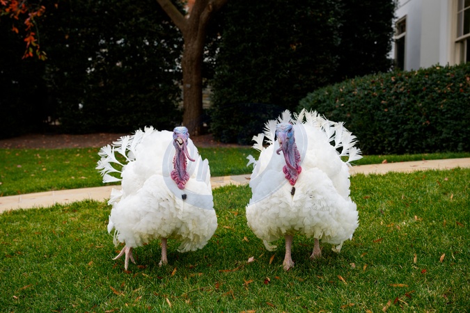 The 2025 Presidential Turkeys, named Gobble and Waddle, arrive at the White House on Tuesday, November 25, 2025., Credit:Andrea Hanks / Avalon