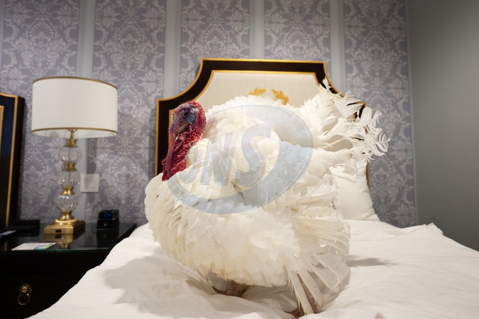 The 2025 Presidential Turkeys, named Gobble and Waddle, arrive at the Willard InterContinental Hotel in Washington, D.C., on Sunday, November 24, 2025., Credit:Andrea Hanks / Avalon