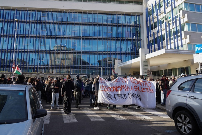 National strike to protest the 2026 budget, dubbed a "war budget." Pictured, the social media protests the editorial staff of La Stampa for publishing articles about Imam Mohamed Shahin. Turin, Italy 28 November 2025, Credit:Selene Daniele / Avalon