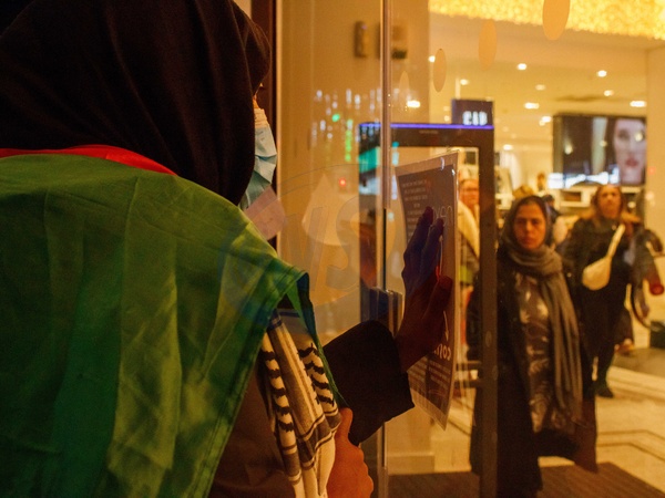 Palestine protesters from a range of groups, most notably Palestine Pulse target "Zionist" shops in and around Oxford Street during Black Friday, London, UK, 28 November 2025, Credit:Alex Day / Avalon