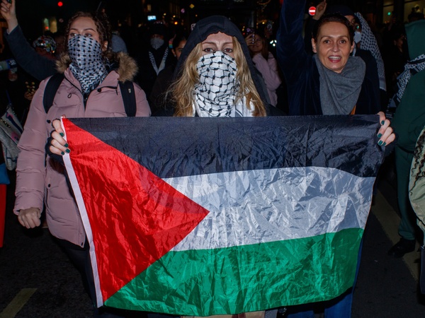Palestine protesters from a range of groups, most notably Palestine Pulse target "Zionist" shops in and around Oxford Street during Black Friday, London, UK, 28 November 2025, Credit:Alex Day / Avalon