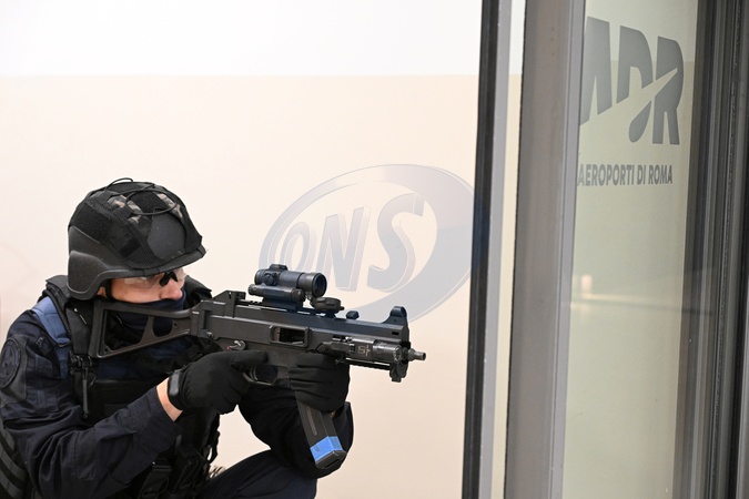 Leonardo Da Vinci Airport. Counterterrorism exercise with simulated police and civil defense operations, supported by the Italian Red Cross, to test the response of the capital's hospitals. Pictured is the special police unit. Fiumicino, Italy 29 November 2025, Credit:Maria Laura Antonelli / Avalon