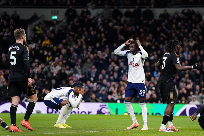 Tottenham players hand on head after missed chance during the Premier League match Tottenham Hotspur vs Fulham at Tottenham Hotspur Stadium, London, United Kingdom, 29th November 2025, Credit:Harvey Murphy/News Images / Avalon