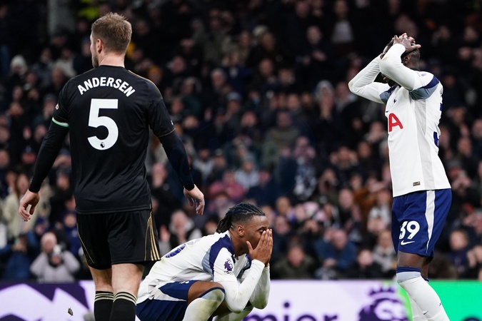 Tottenham Hotspur players hands on head after missed chance during the Premier League match Tottenham Hotspur vs Fulham at Tottenham Hotspur Stadium, London, United Kingdom, 29th November 2025, Credit:Harvey Murphy/News Images / Avalon