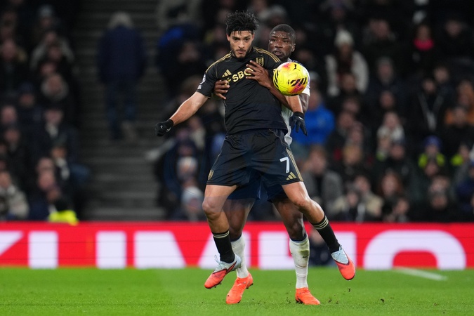 Raul Jimenez of Fulham and Kevin Danso of Tottenham Hotspur battle during the Premier League match Tottenham Hotspur vs Fulham at Tottenham Hotspur Stadium, London, United Kingdom, 29th November 2025, Credit:Harvey Murphy/News Images / Avalon