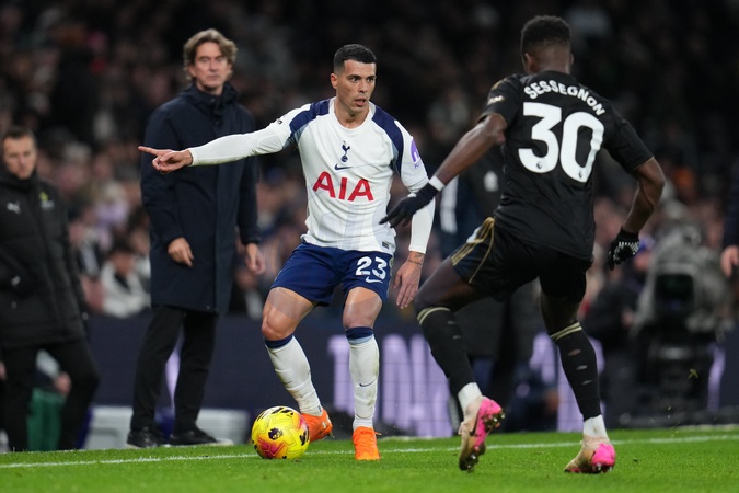 Pedro Porro of Tottenham Hotspur on the ball during the Premier League match Tottenham Hotspur vs Fulham at Tottenham Hotspur Stadium, London, United Kingdom, 29th November 2025, Credit:Harvey Murphy/News Images / Avalon