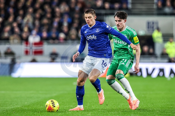 Vitaliy Mykolenko of Everton breaks with the ball during the Premier League match Everton vs Newcastle United at Hill Dickinson Stadium, Liverpool, United Kingdom, 29th November 2025, Credit:Ae Cosgrove/News Images / Avalon