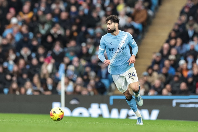 Josko Gvardiol of Manchester City breaks with the ball during the Premier League match Manchester City vs Leeds United at Etihad Stadium, Manchester, United Kingdom, 29th November 2025, Credit:Mark Cosgrove/News Images / Avalon