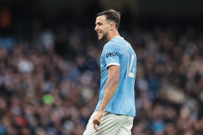 Nico Gonzalez of Manchester City during the Premier League match Manchester City vs Leeds United at Etihad Stadium, Manchester, United Kingdom, 29th November 2025, Credit:Mark Cosgrove/News Images / Avalon