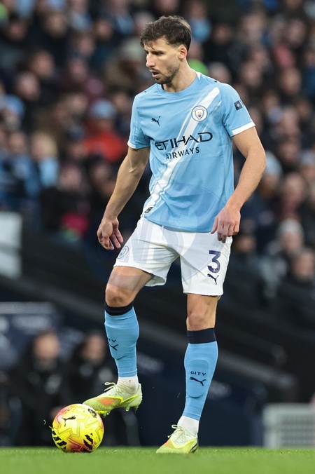 Ruben Dias of Manchester City with the ball during the Premier League match Manchester City vs Leeds United at Etihad Stadium, Manchester, United Kingdom, 29th November 2025, Credit:Mark Cosgrove/News Images / Avalon