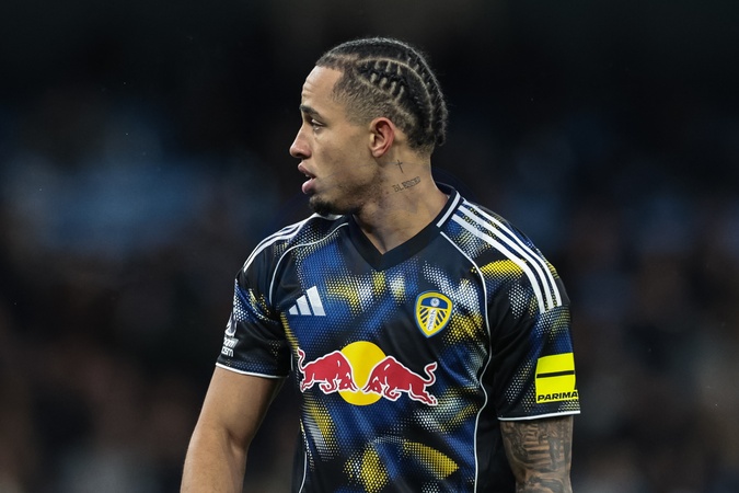 Noah Okafor of Leeds United platted hair and blessed cross tattoo during the Premier League match Manchester City vs Leeds United at Etihad Stadium, Manchester, United Kingdom, 29th November 2025, Credit:Mark Cosgrove/News Images / Avalon