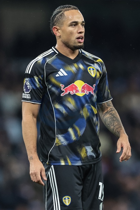 Noah Okafor of Leeds United during the Premier League match Manchester City vs Leeds United at Etihad Stadium, Manchester, United Kingdom, 29th November 2025, Credit:Mark Cosgrove/News Images / Avalon
