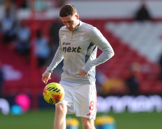Elliot Anderson of Nottingham Forest in the pregame warmup session during the Premier League match Nottingham Forest vs Brighton and Hove Albion at City Ground, Nottingham, United Kingdom, 30th November 2025, Credit:Richard Bierton/News Images / Avalon