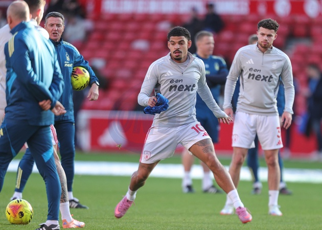 Morgan Gibbs-White of Nottingham Forest in the pregame warmup session during the Premier League match Nottingham Forest vs Brighton and Hove Albion at City Ground, Nottingham, United Kingdom, 30th November 2025, Credit:Richard Bierton/News Images / Avalon
