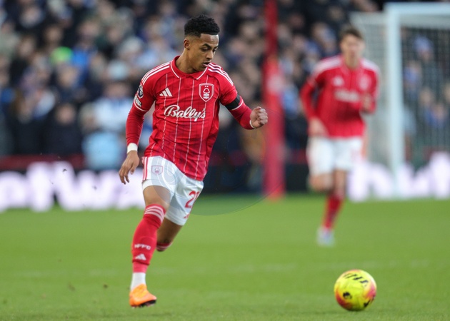 Omari Hutchinson of Nottingham Forest breaks with the ball during the Premier League match Nottingham Forest vs Brighton and Hove Albion at City Ground, Nottingham, United Kingdom, 30th November 2025, Credit:Richard Bierton/News Images / Avalon