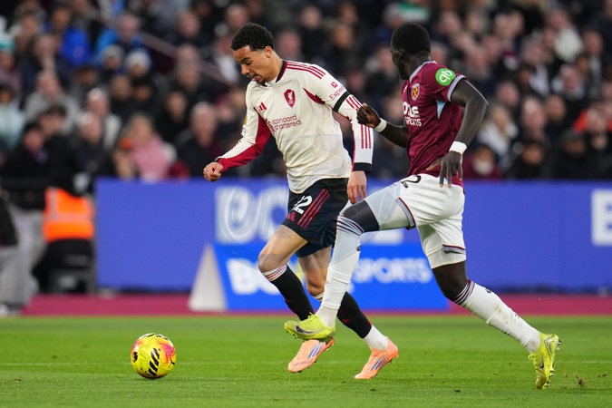 Hugo Ekitike of Liverpool on the ball during the Premier League match West Ham United vs Liverpool at London Stadium, London, United Kingdom, 30th November 2025, Credit:Harvey Murphy/News Images / Avalon